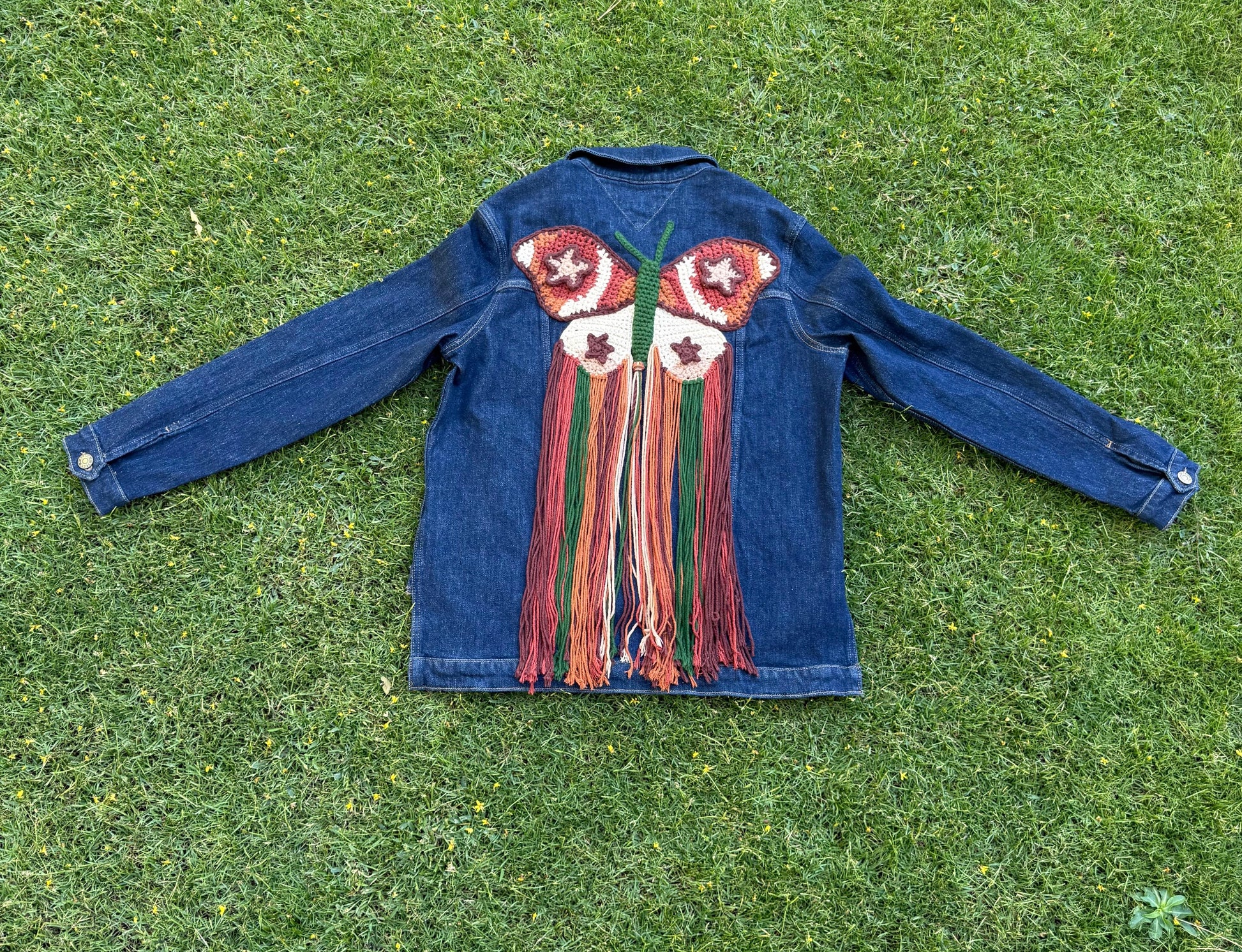 Part of the REDNM X Shirts & Giggles collaborative collection, where discarded denim is reimagined into timeless, one-of-a-kind designs. Each piece is finished with a hand-crafted butterfly crochet, a subtle symbol of transformation and individuality.